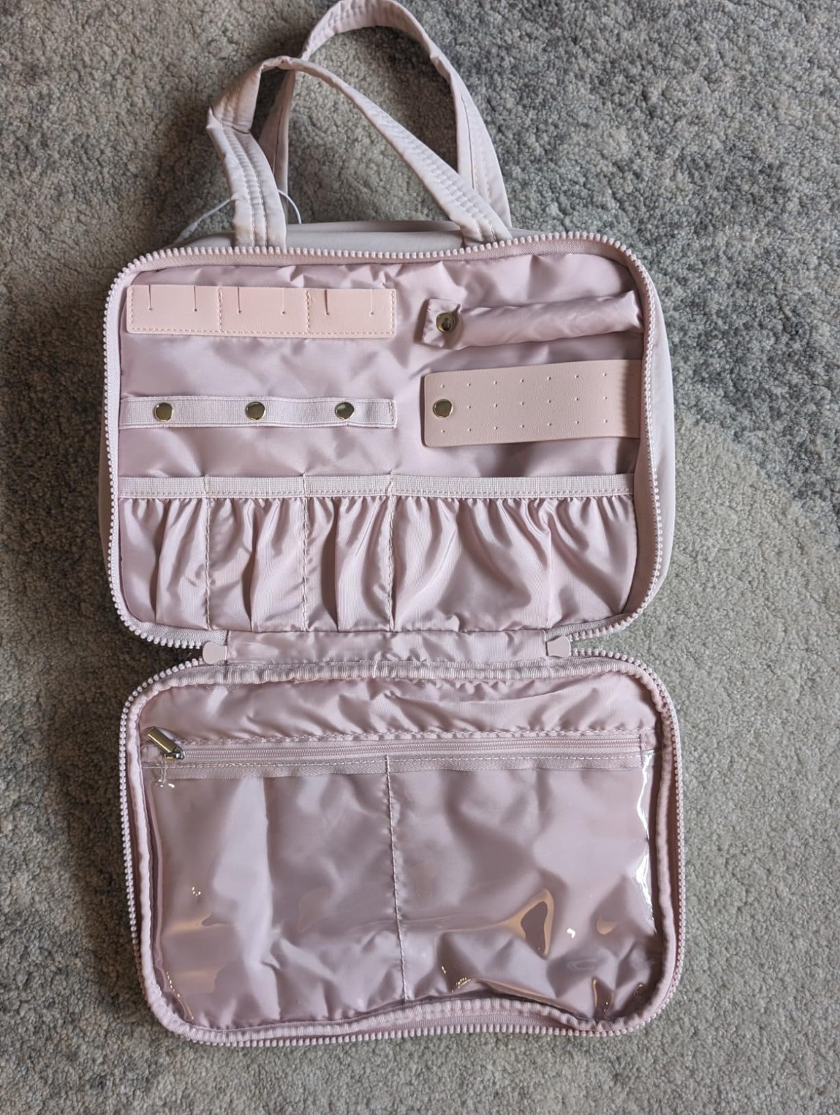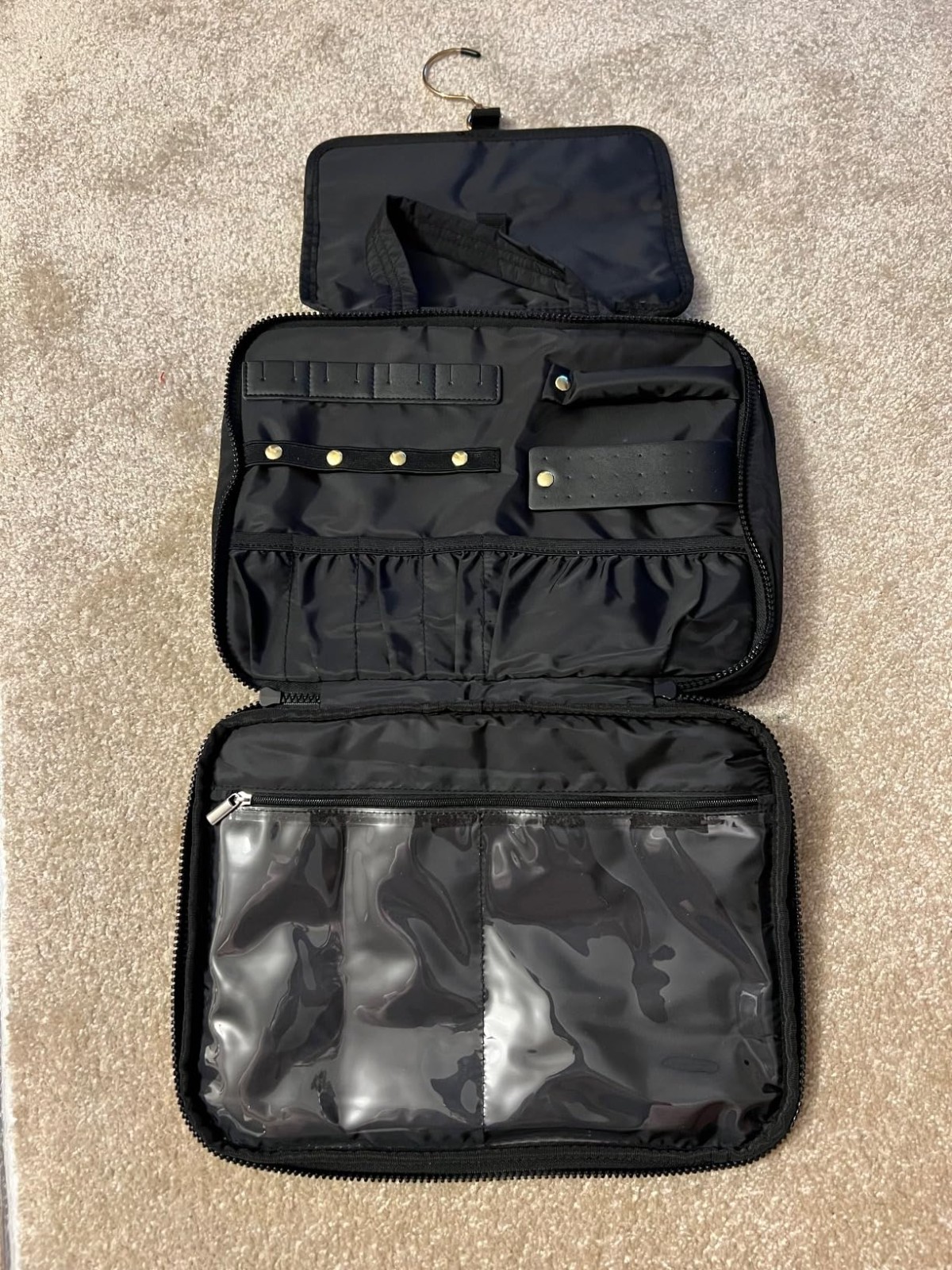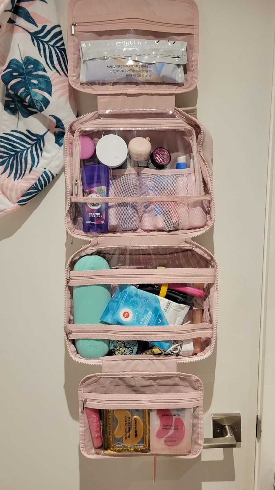 ORGANIZED JEWELRY COMPARTMENT: Featuring a dedicated jewelry organizer in the front pocket, this travel toiletry bag is ideal for securely storing rings, earrings, bracelets, bangles, necklaces, and other jewelry to ensure that you keep your jewelry organized while on the go.