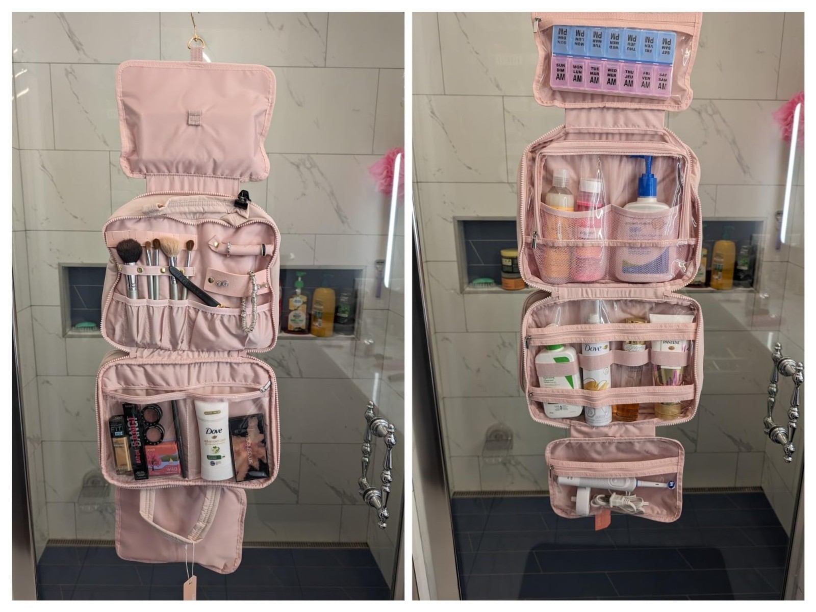 Personalized Travel Toiletry Bag with Jewelry Organizer, Hanging Travel Bag for Toiletries, Puffy Makeup Cosmetic Bag Organizer, Carry-on Travel Accessories Essentials